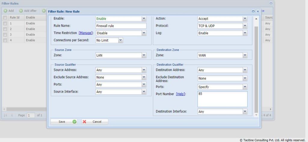 3. Destination Zone > Port > specify the port number eg : 91,56