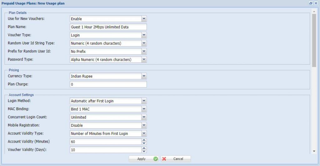 14. Set the Account Validity Minutes. Eg: 60 Minutes (After 60 Minutes User can be disconnected automatically)