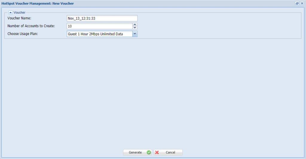 27. Select the Usage plan Wc have Created early. Eg: Guest 1 Hour 2Mbps Unlimited Data
