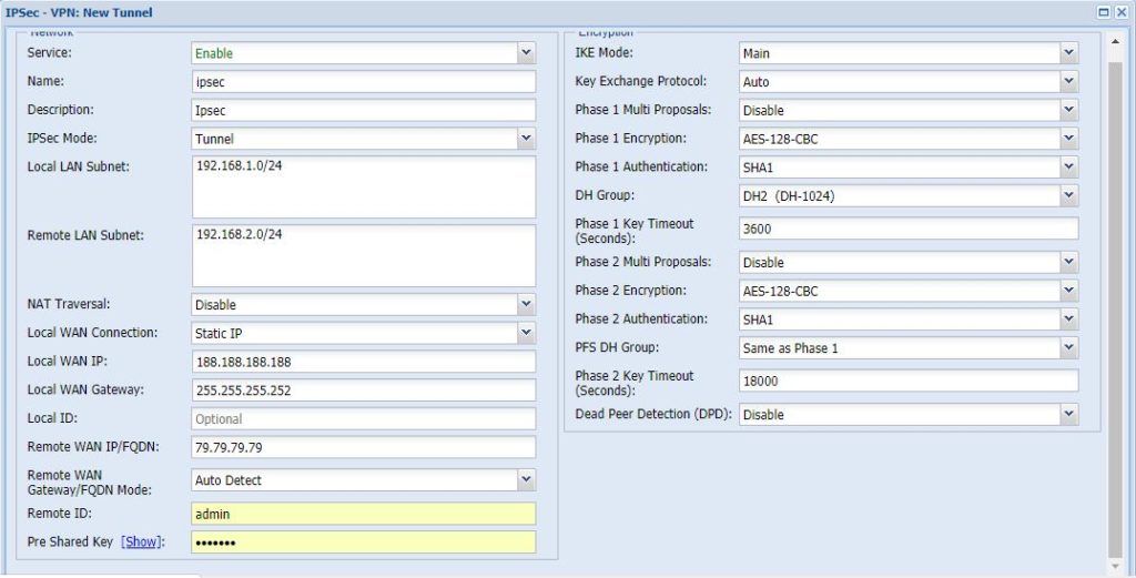 Step 7: IKE mode make it as the main and Key Exchange mode as Auto and create the Phase 1 and Phase 2 configure as same for both branch and head office and Enable the Dead Per detection to enable anyone side is sufficient