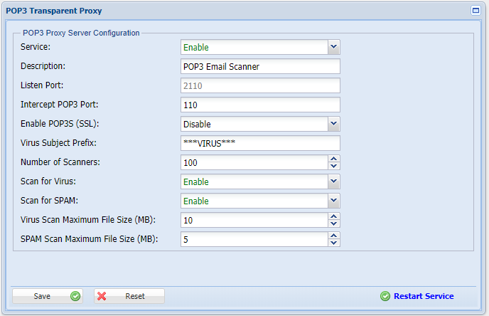 This is used to enable virus and spam filtering on incoming emails. You must have a Firewall rule that redirects the pop3 requests to the port number specified in the pop3 proxy configuration.