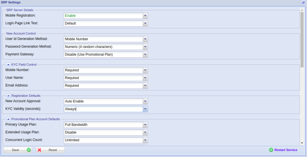 Step 3: Enable the Mobile Registration Service and Mention the User id and password generation method based on your requirement.