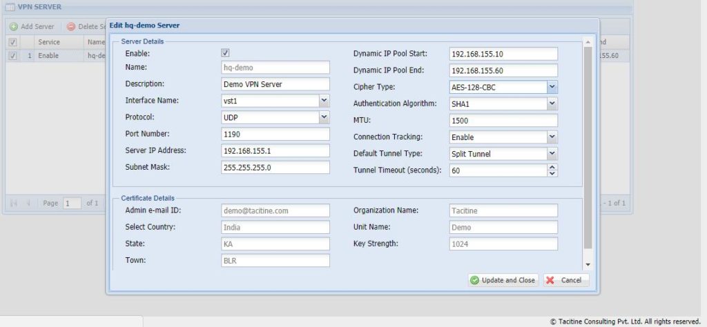 Step 1 : Navigate Configuration > VPN > SSL-VPN Server > Add > enable the services Provide the descriptions