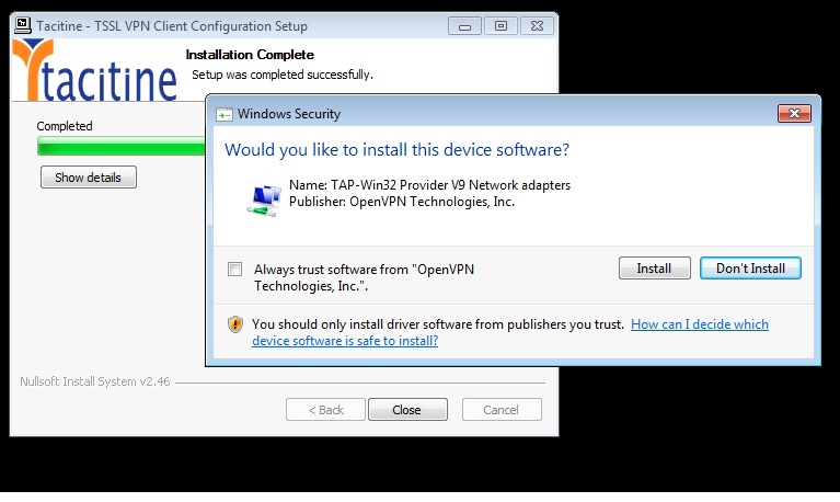 * Go to desktop, search for Tacitine SSL VPN. Right-click and choose “Run the program ”