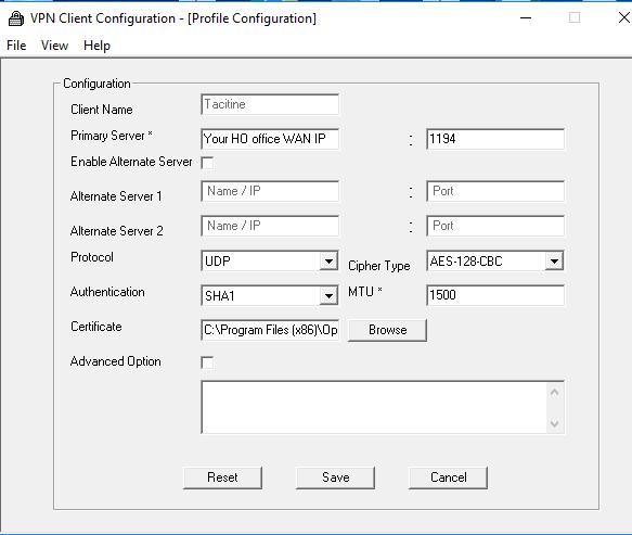 5.Taskbar tacitine VPN icon Right-click -> select Tacitine SSL Client configuration